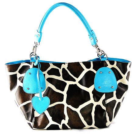 Buy Turquoise Giraffe Designer Inspired Animal Print Handbag Purse Bag Tote NEW Now
