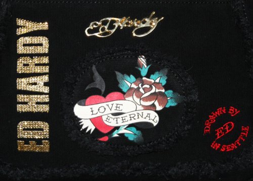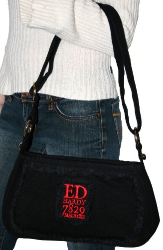 Buy ED HARDY Christian Audigier Fiona Canvas Purse Handbag Shoulder Bag Black Now
