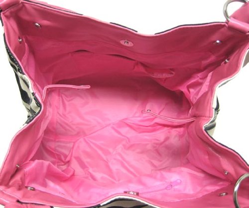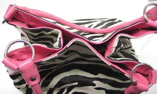Buy Black / White Zebra Print Shoulder Bag Purse Pink Trim Now