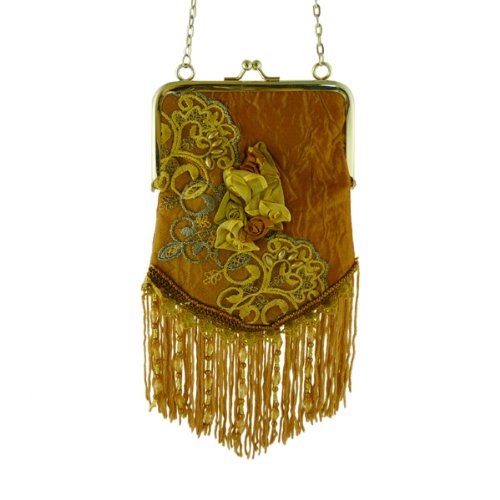 Buy Victorian Pouch Brown Rose Fringe Beaded / Embellished Bag / Purse Now