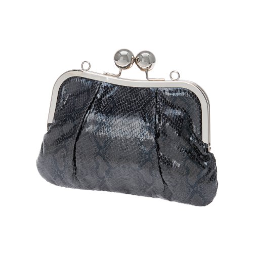 This petite handbag combines metallic trim along the upper edge and kiss-lock closure. It also features this moment's hot snakeskin print, making it a staple accessory for the new season! Also with matching strap.