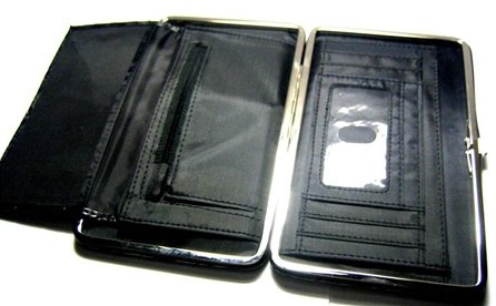 This item is one of today's trendiest items. Carry it alone or slip into any purse - so compact and Functional! The checkbook cover can be easily removed for additional versatility. Wallet opens with a simple push of a button - and opens completely flat for superior access!