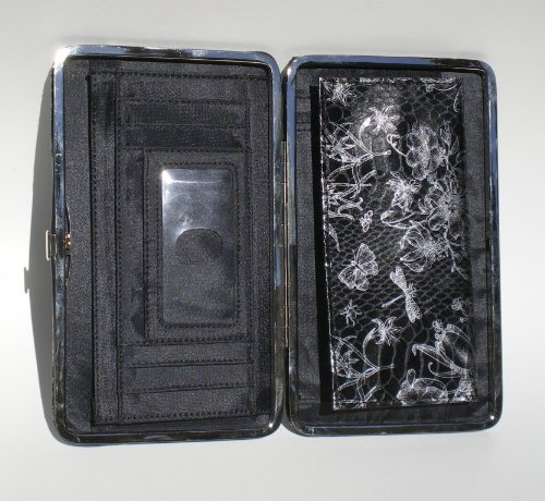 Buy Black and Silver Flower Print Flat Wallet Clutch Now