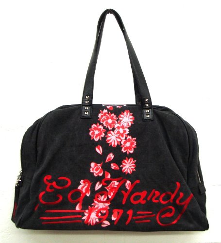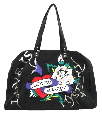 Buy New Ed Hardy Jane Carry on Rhinestone Canvas & Leather Tote Handbag Purse Now