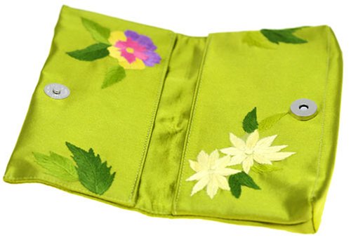 These Embroidered Clutch is hand-made from Thai silk or a satin rayon silk blend. It is decorated with delicate embroidery and has a zippered pocket on the interior and a pocket on the flap.