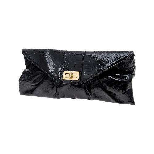 Go sophisticated with this first-class clutch! A staple item to complete your best evening outfits, reuniting many of the season's hottest trends. With flap profile, metallic closure, sultry snakeskin print, and gathered finish. Wear it with or without the shoulder strap.