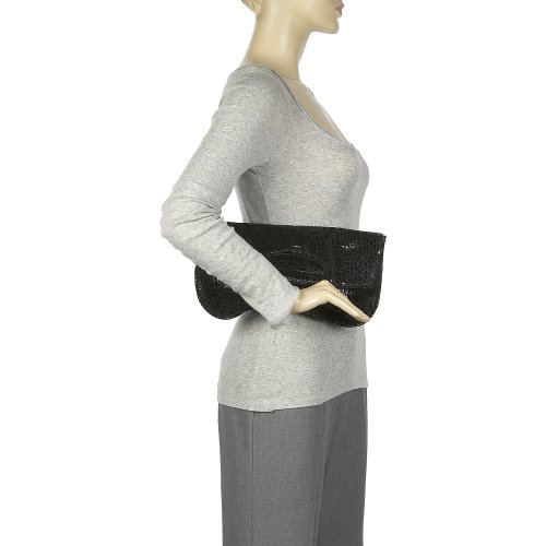 Buy Lisa David Designs Foldover Clutch: Croco (Black Croco) Now