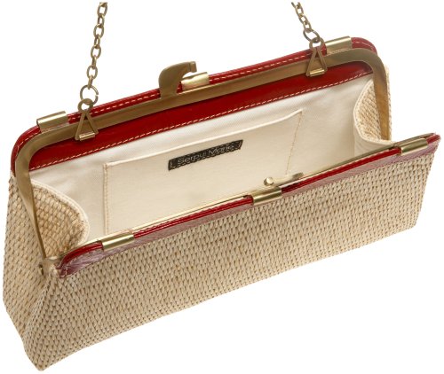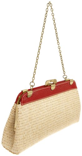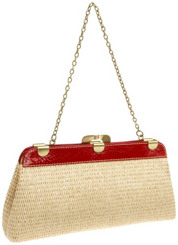 Buy Serpui Marie Cindy Straw Clutch with Patent Trim And Chain,Natural/Red,one size Now